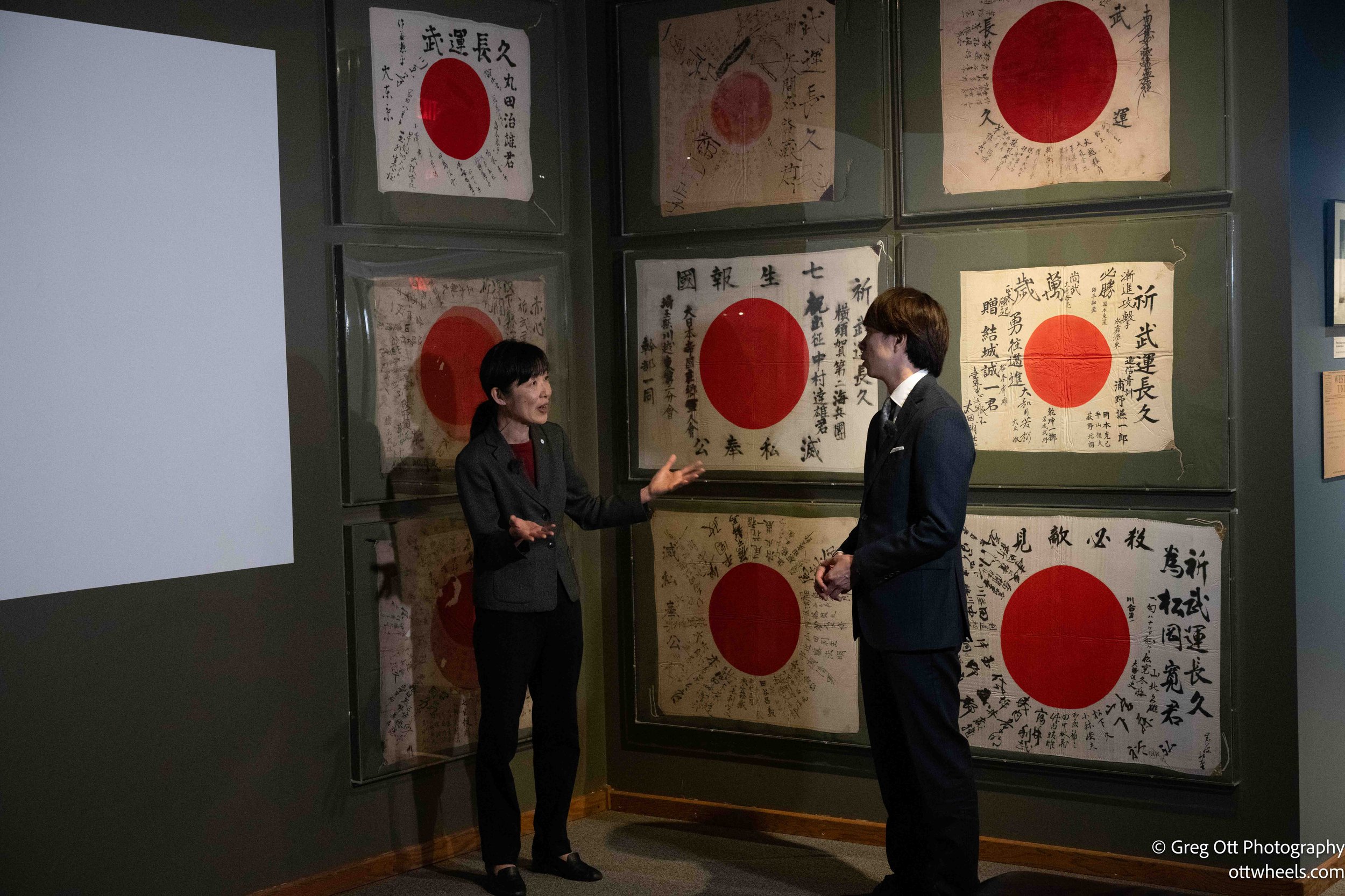 I learned that when Japanese soldiers left home during WWII, families often gave them flags covered in handwritten messages—good wishes, prayers, and names. Many of these were taken by American soldiers from those who were killed, often still folded and unread. In some cases, the official stories told back home didn’t match what actually happened. These flags became one of the few personal links back to the families. The film crew was there to document that collection and help tell those stories more accurately.