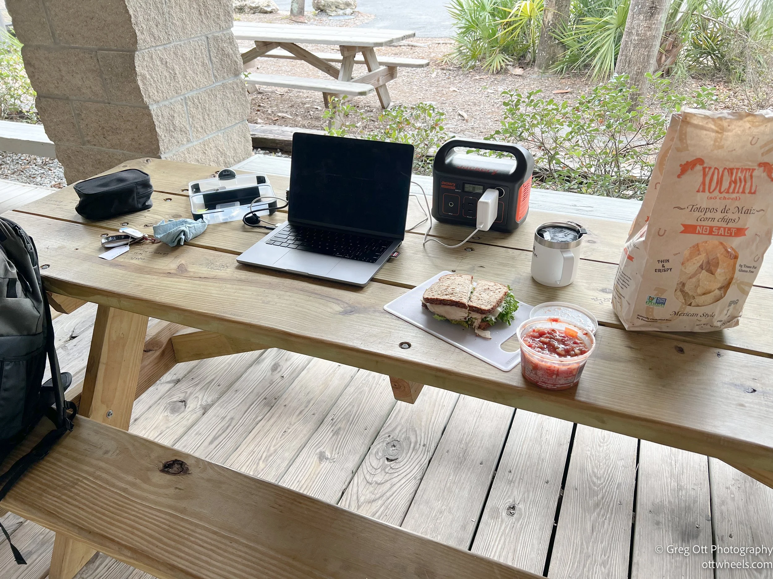 I woke around 7:30 am and made breakfast. It took me a while to breakdown the campsite and get everything packed. Despite the the shower conditions at Ginnie Springs, I took a shower and was ready to go around 11:30. I stopped at the store to do some online work and made a sandwich before driving to Tallahassee. I knew the sun would be too bright for photographs in the early afternoon.